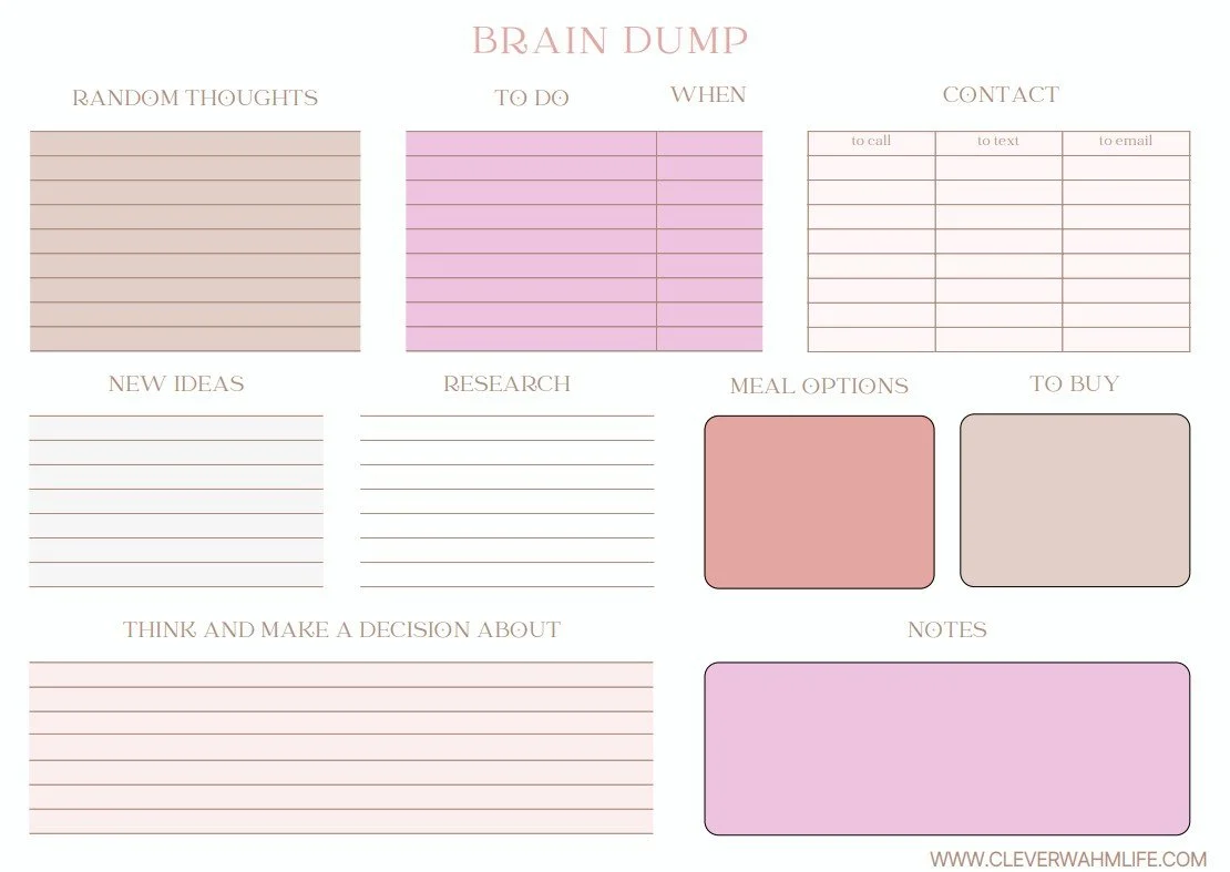 Content Brain Dump Sheet (Printable) — clear your head and capture ideas before they slip away.